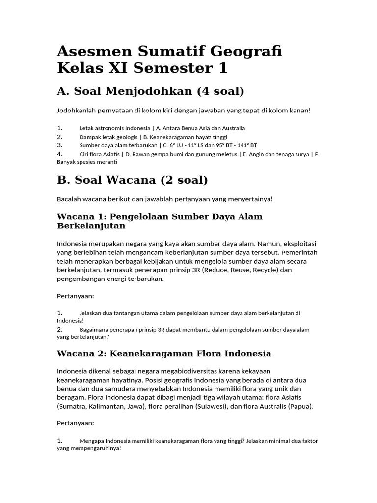 Berikut adalah contoh-contoh soal yang dapat dijadikan referensi, disusun berdasarkan tipe soal yang umum digunakan: